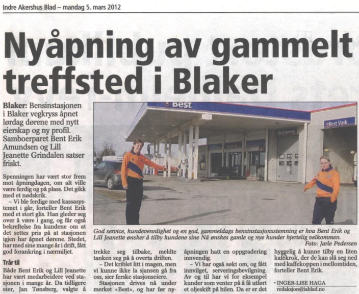 Bensinstasjonen i Blaker vegkryss, på folkemunne kalt "Gulfen", åpnet dørene lørdag 3. mars med nye eiere og ny profil! Vi sier takk og lov og lykke til! Gladmeldingen nedenfor finner du i lesbart format her