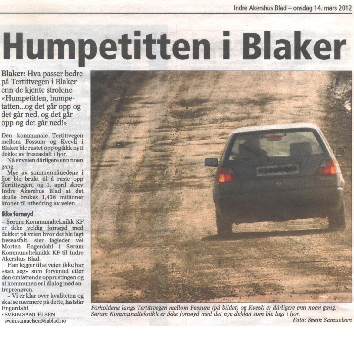 Indre har døpt om Tertittveien, tidligere Promilleveien, til Humpetitten. Og det med all mulig grunn. Der går det opp og det går ned og det går opp... Mer lesbart format av denne artikkelen finner du her