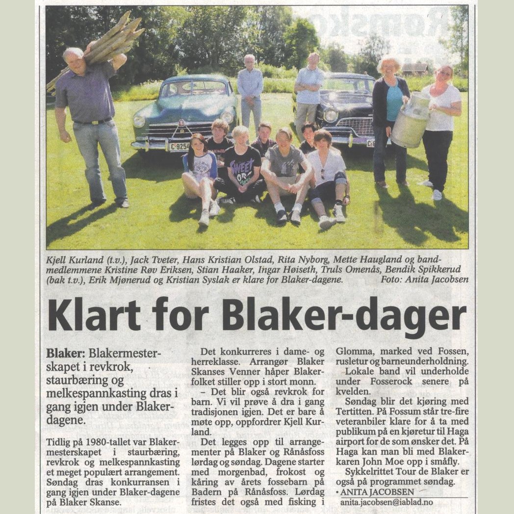 Blakermesterskapet i revkrok, staurbæring og melkespannkasting dras igang igjen under årets Blakerdager. Hele programmet finner du her Les saken i mer lesbart format her Les om aktivitetene på Smia, Blaker Skanse under Blakerdagene nederst på denne siden. ![]()
